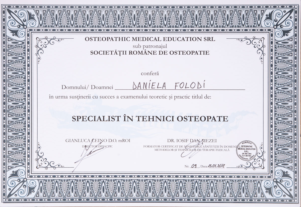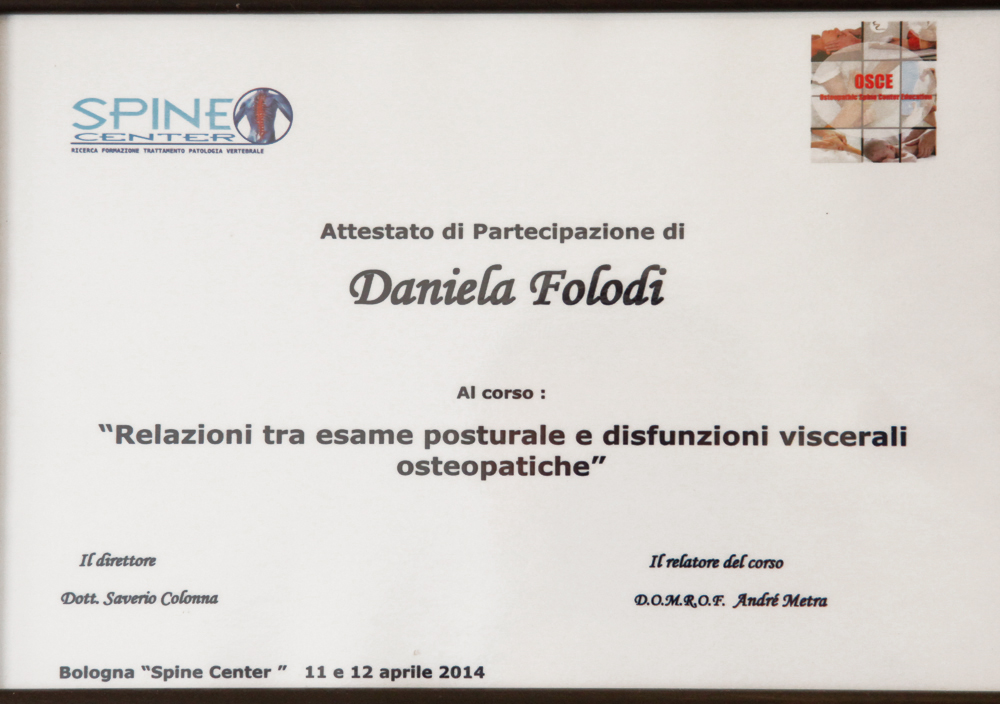 Cursuri de osteopatie cu profesor Do. Gianluca Ceino de la Universitatea de osteopatie din Urbino,Italia