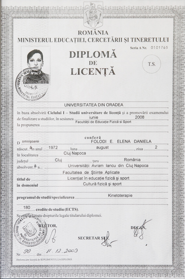 A efectuat practica la Spitalul Clinic de Recuperare din Cluj Napoca.